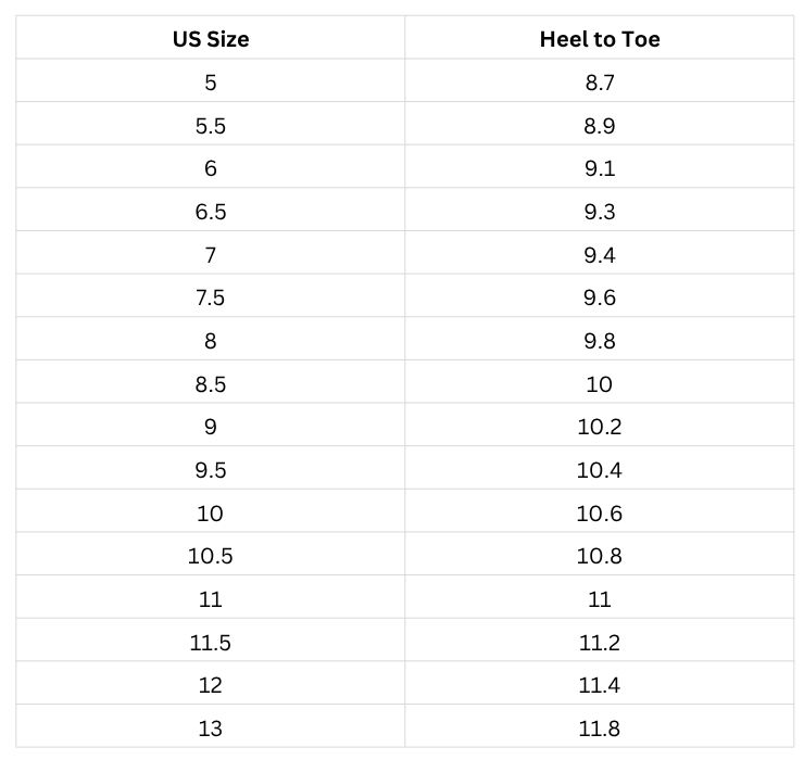 Size Chart (inches):